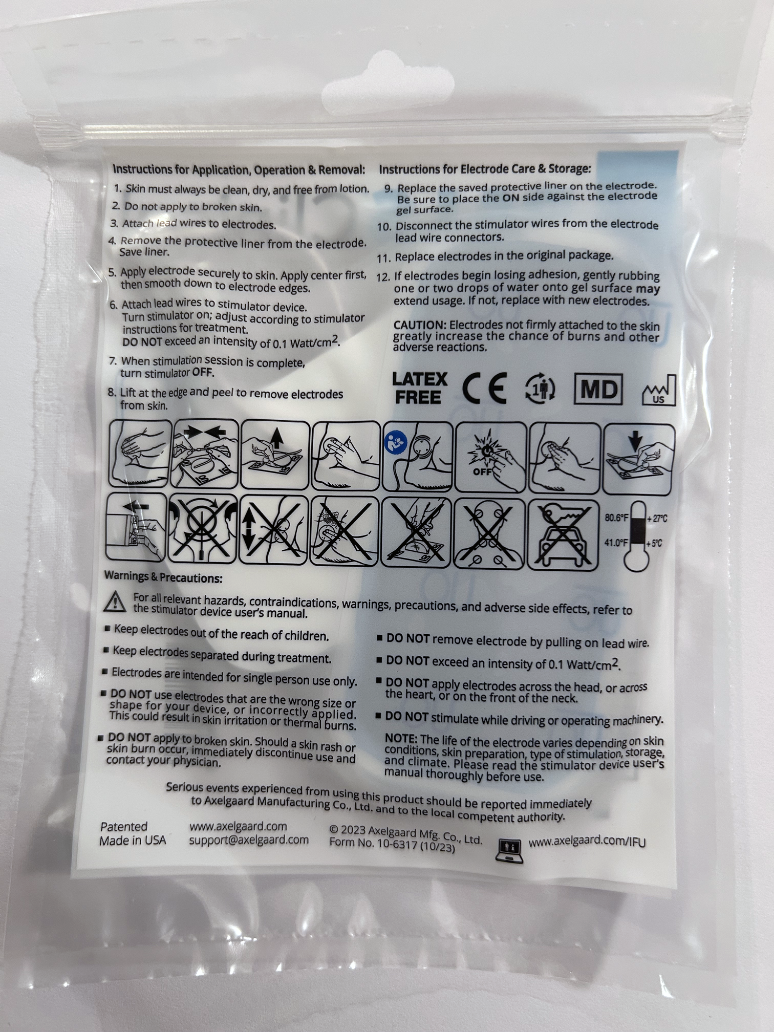 The specialized blue DermaFlow® gel is gentle enough for use on extremely sensitive skin, thick enough to adhere through body hair, and designed to prevent smearing of the hydrogel outside the electrode area. The electrodes feature Axelgaard’s new skin friendly AmSeal® adhesive, which provides a superior bond.