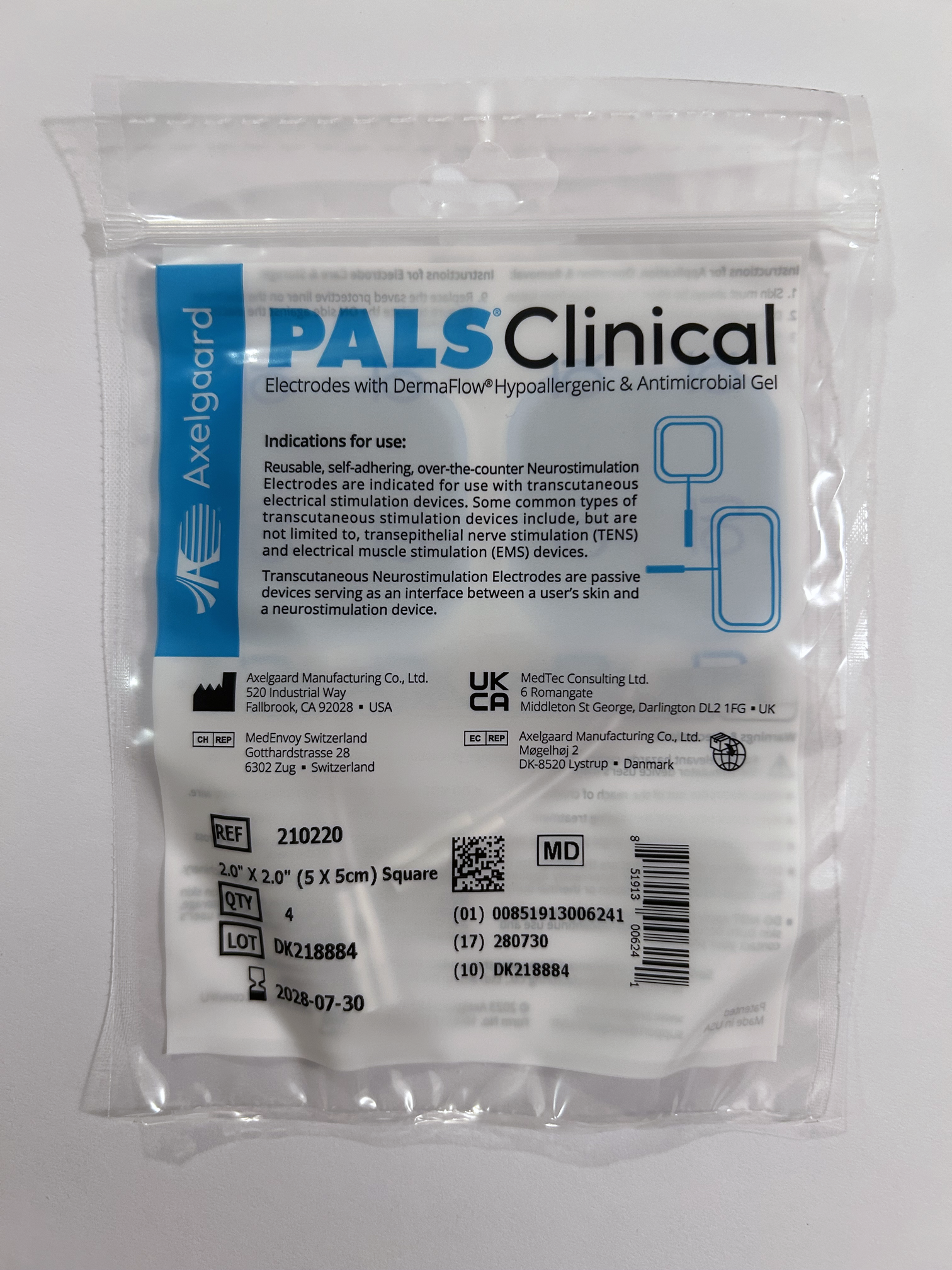 Designed for all EMS and TENS applications, PALS® Clinical antimicrobial neurostimulation electrodes combine a patented stainless steel knit cloth and hydrogel construction with our exclusive impedance compensation system. The stainless-steel fabric provides optimum conductivity and conformity.