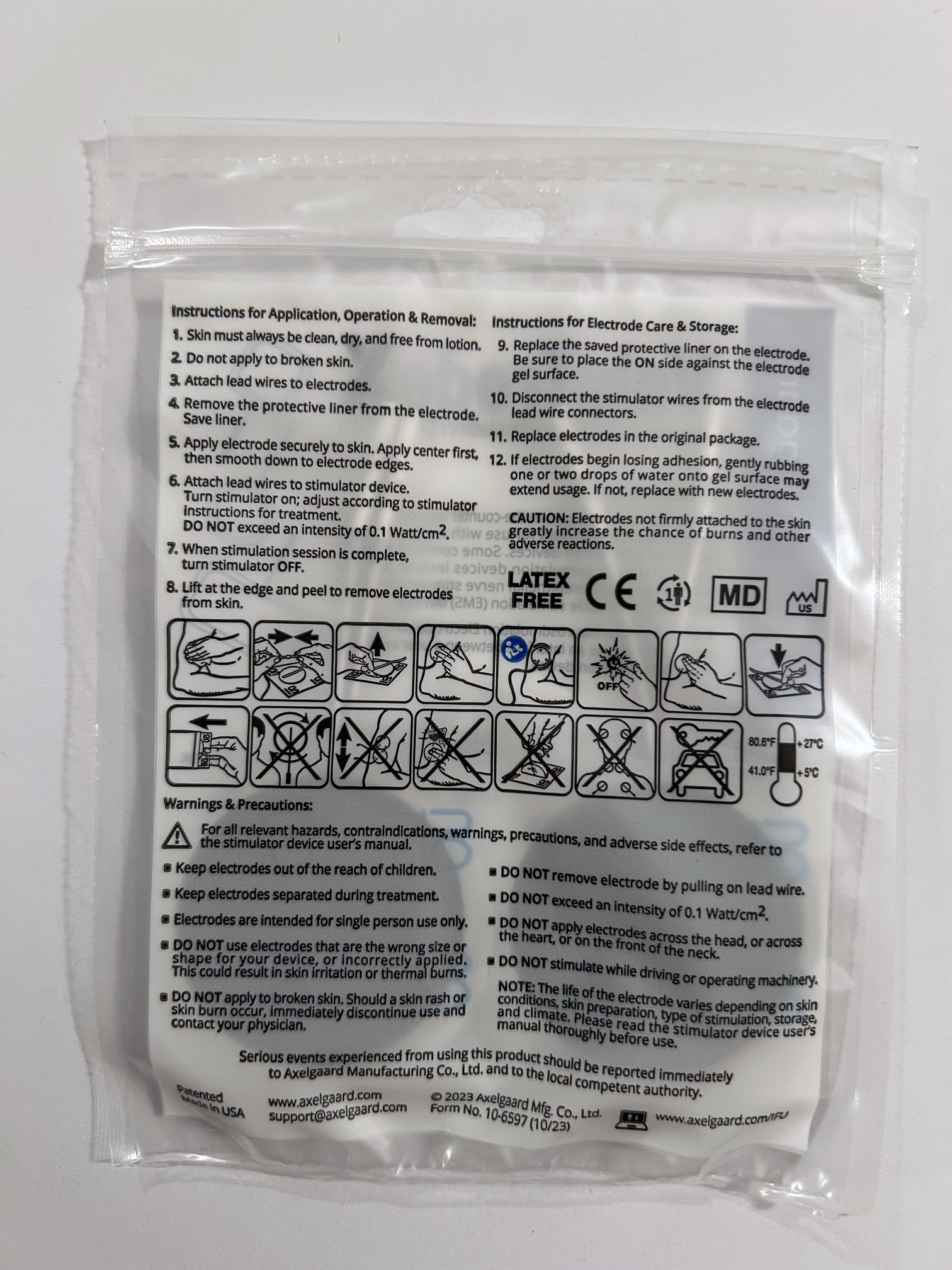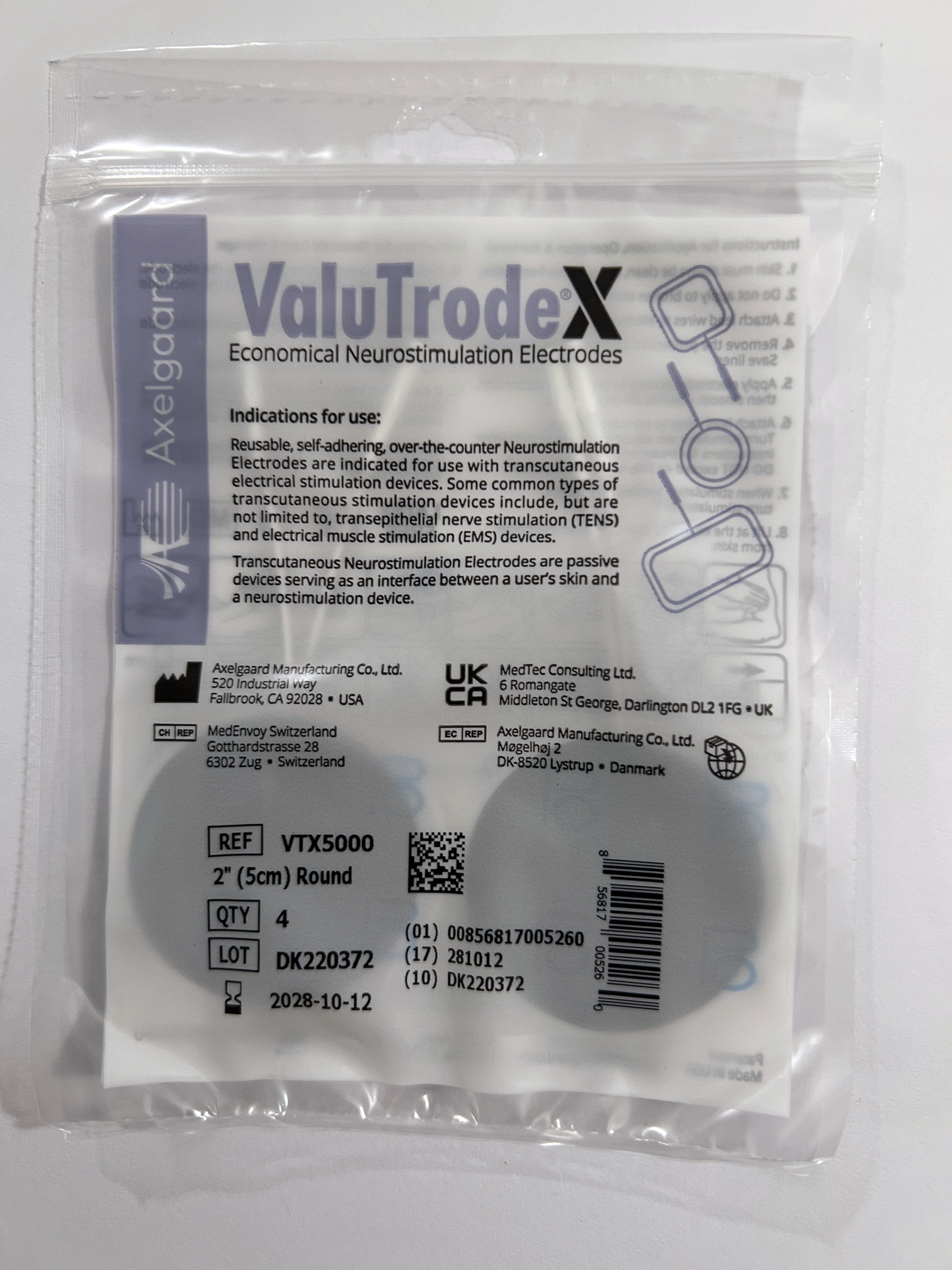 Axelgaard’s advanced manufacturing techniques shine in this smartly designed conductive film electrode with a white cloth top. ValuTrode® X is the clinician’s choice for durability, reusability, and value. These electrodes feature an oversized border to facilitate proper and easy removal, which further extends the life of the electrode. Better patient comfort during therapy is achieved with better skin adhesion through Axelgaard’s patented multi-layer MultiStick® hydrogel. Tan cloth tops are available by special order.