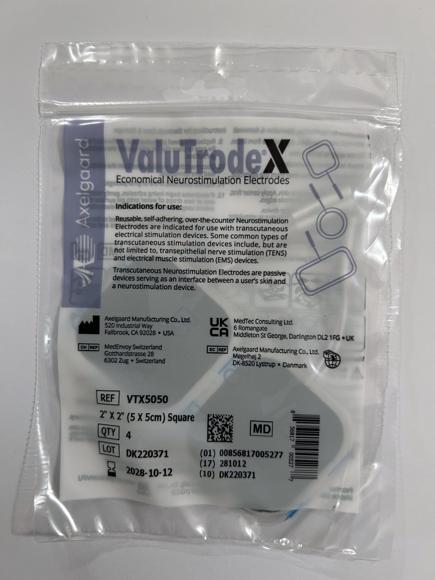Axelgaard’s advanced manufacturing techniques shine in this smartly designed conductive film electrode with a white cloth top. ValuTrode® X is the clinician’s choice for durability, reusability, and value. These electrodes feature an oversized border to facilitate proper and easy removal, which further extends the life of the electrode. Better patient comfort during therapy is achieved with better skin adhesion through Axelgaard’s patented multi-layer MultiStick® hydrogel. Tan cloth tops are available by special order.